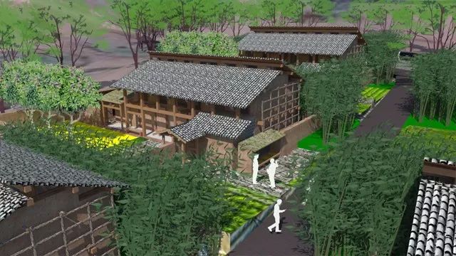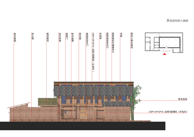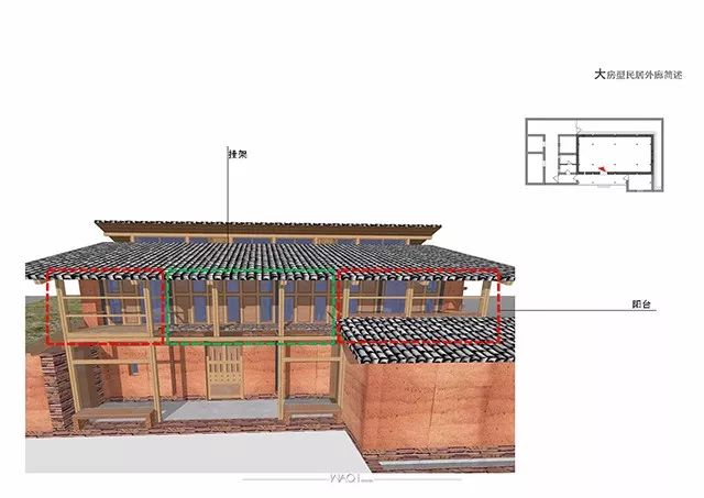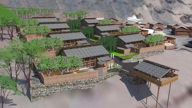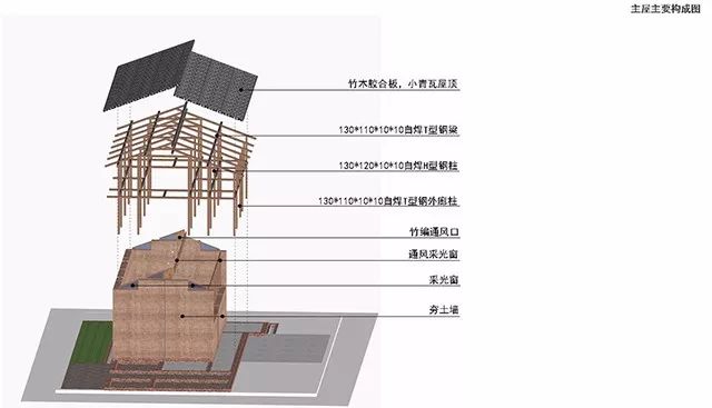 民居建筑采用生态建筑理念,墙体用当地传统夯土墙,所用材料就近选择