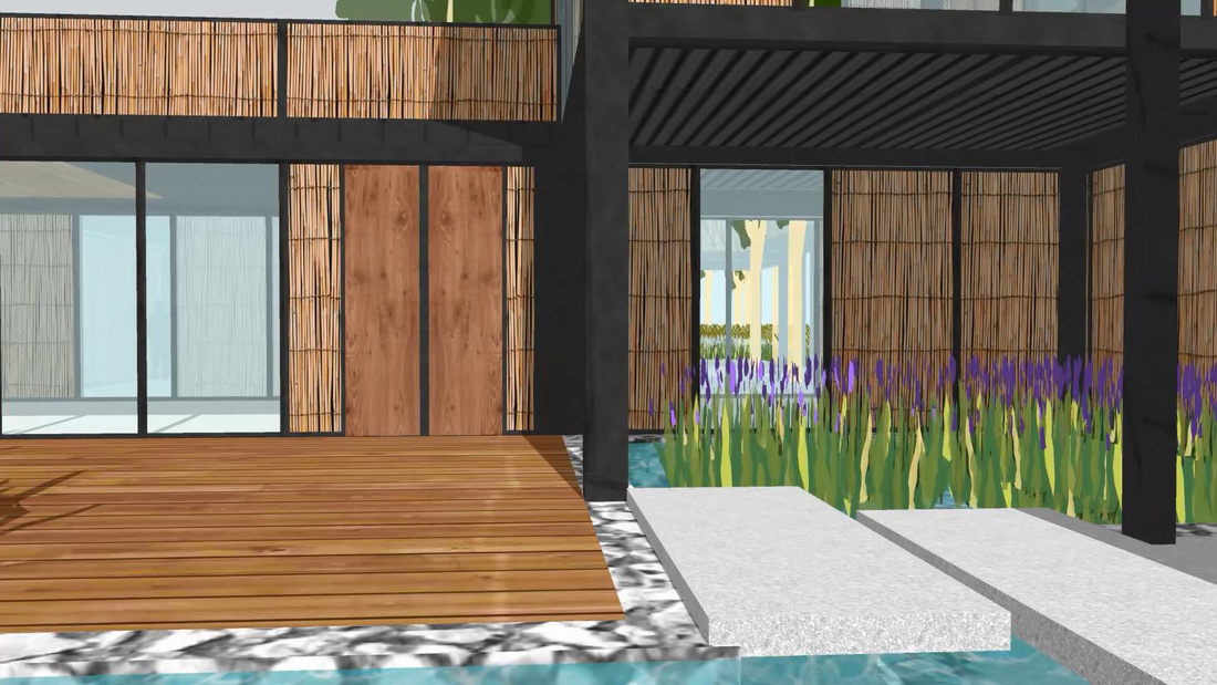 田园综合体展示中心配有特色农业示范区、帐篷区以及研学接待区域,目的是打造产学研三位一体的寓教于乐的地方。田园综合体区靠近农田,因此整体构建了雨水收集、净化与回用,能极大的抵御洪水来临时对建筑的伤害。