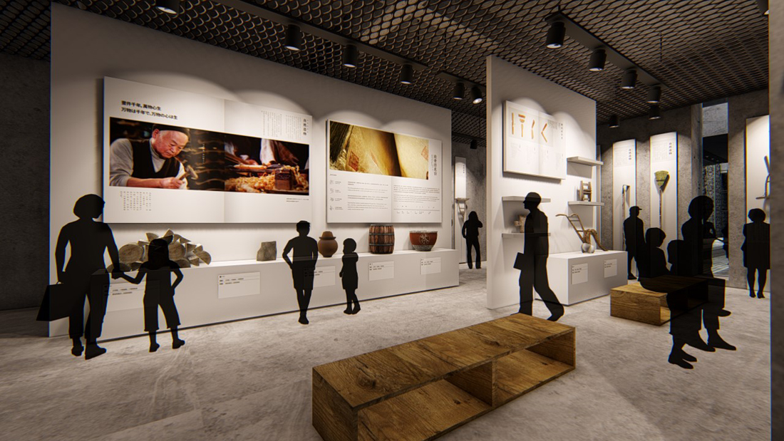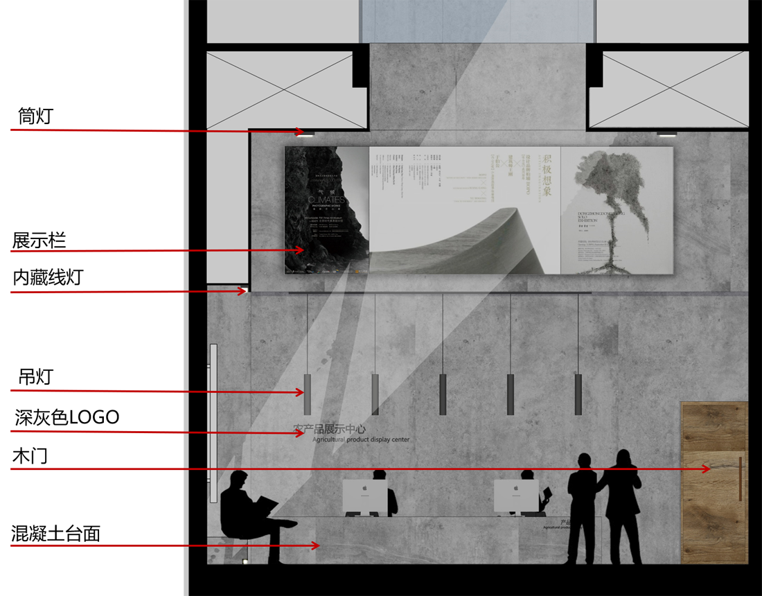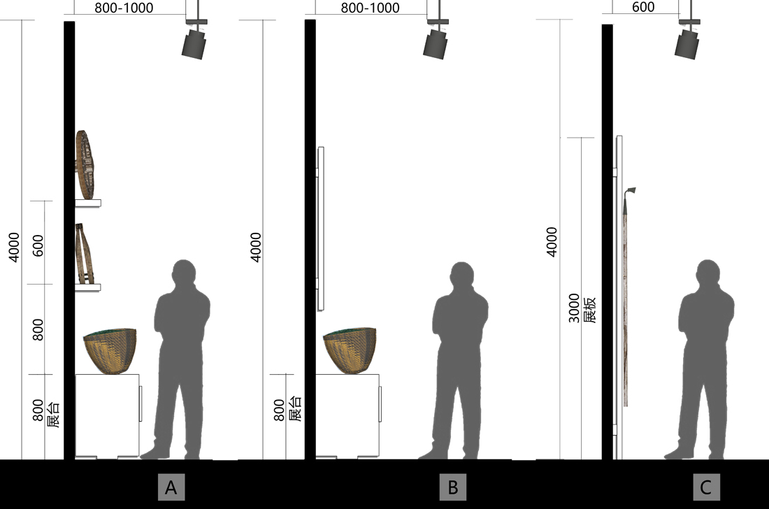 灯光是室内设计的重点,我们希望只有展品的位置被打亮,参观者则在暗处,亮暗的强烈对比能够进一步衬托展示内容,加深空间的体验感。