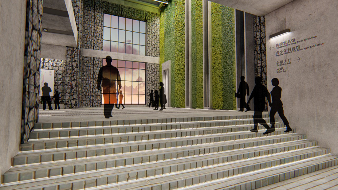 因此设计的一个重点就是如何与周边环境相融合,让生态园的肌理和风格在展示中心内得到延续。