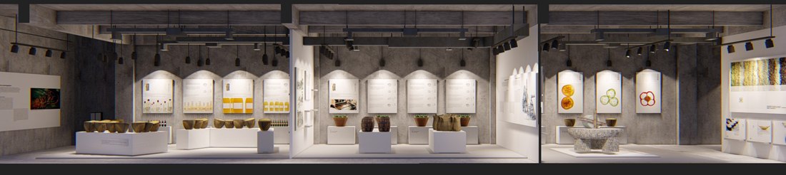 展厅空间以灰色为主基调,