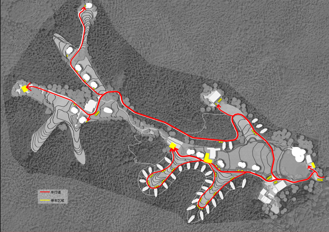 二类——车道。单行车,方便到达每个功能区乃至每栋建筑。