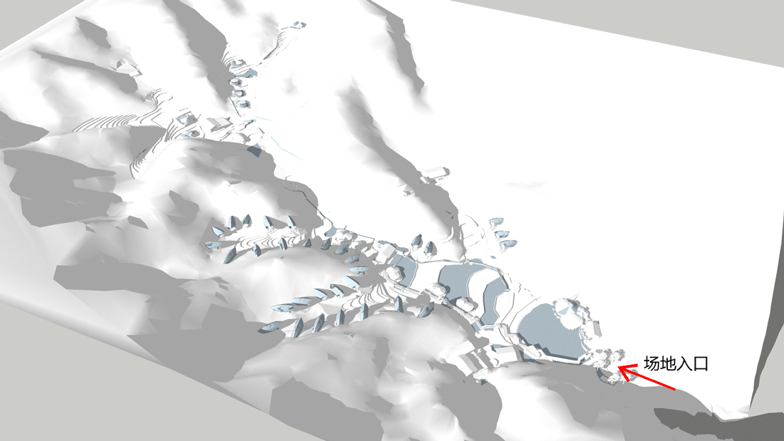 VIP位于场地内部山谷,中心服务区为此区域带来便利,前侧的会议厅。