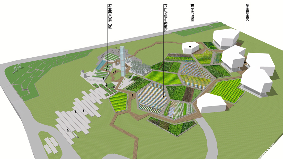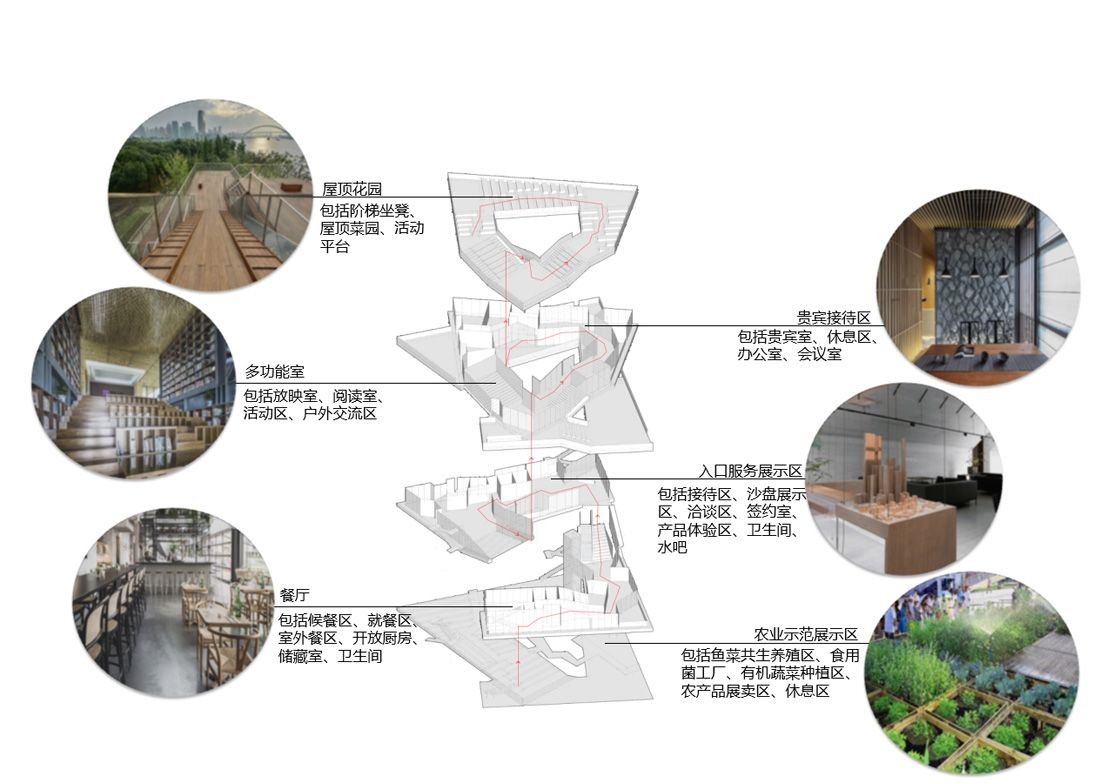 架空层为农业示范展示区,主要为鱼菜共生养殖区、食用菌工厂、有机蔬菜种植区等等;
