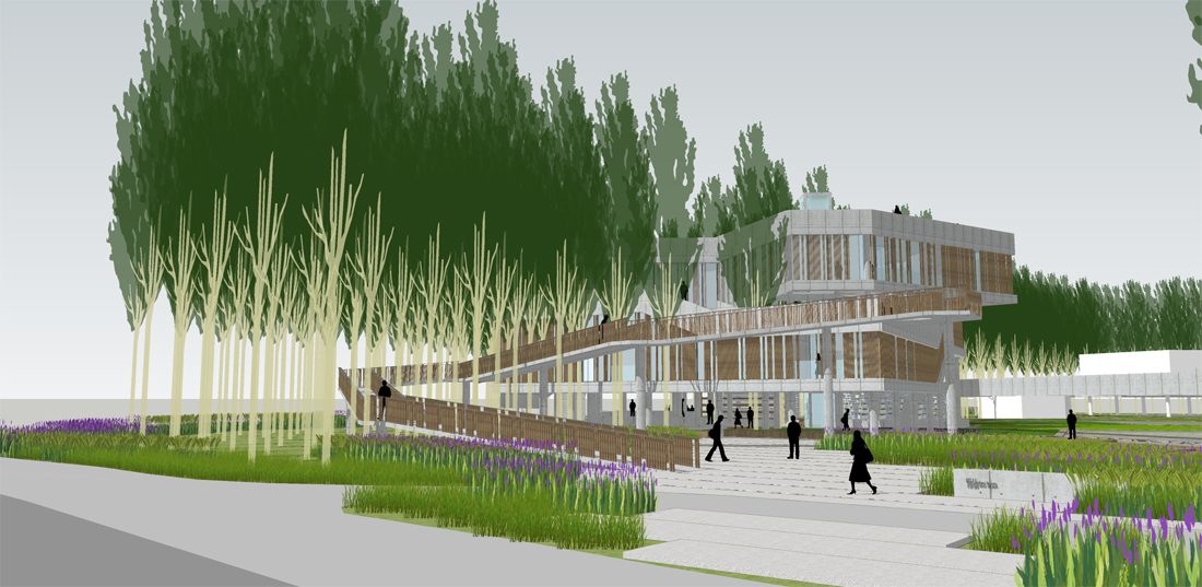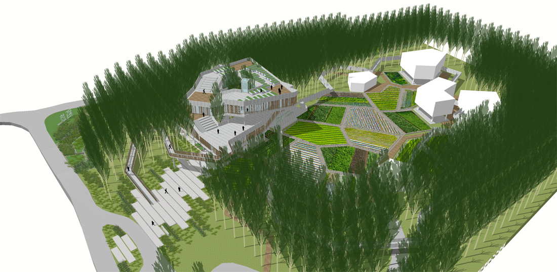 场地有着丰富的杨树,当地的自然景观保存完好,因而景区的接待中心的设计上,本着与周边的居民楼和农田衔接的想法,WAQI将接待中心设计为一个综合型的生态农业建筑。让到访的旅客,在探索中发现更多的新鲜的内容。