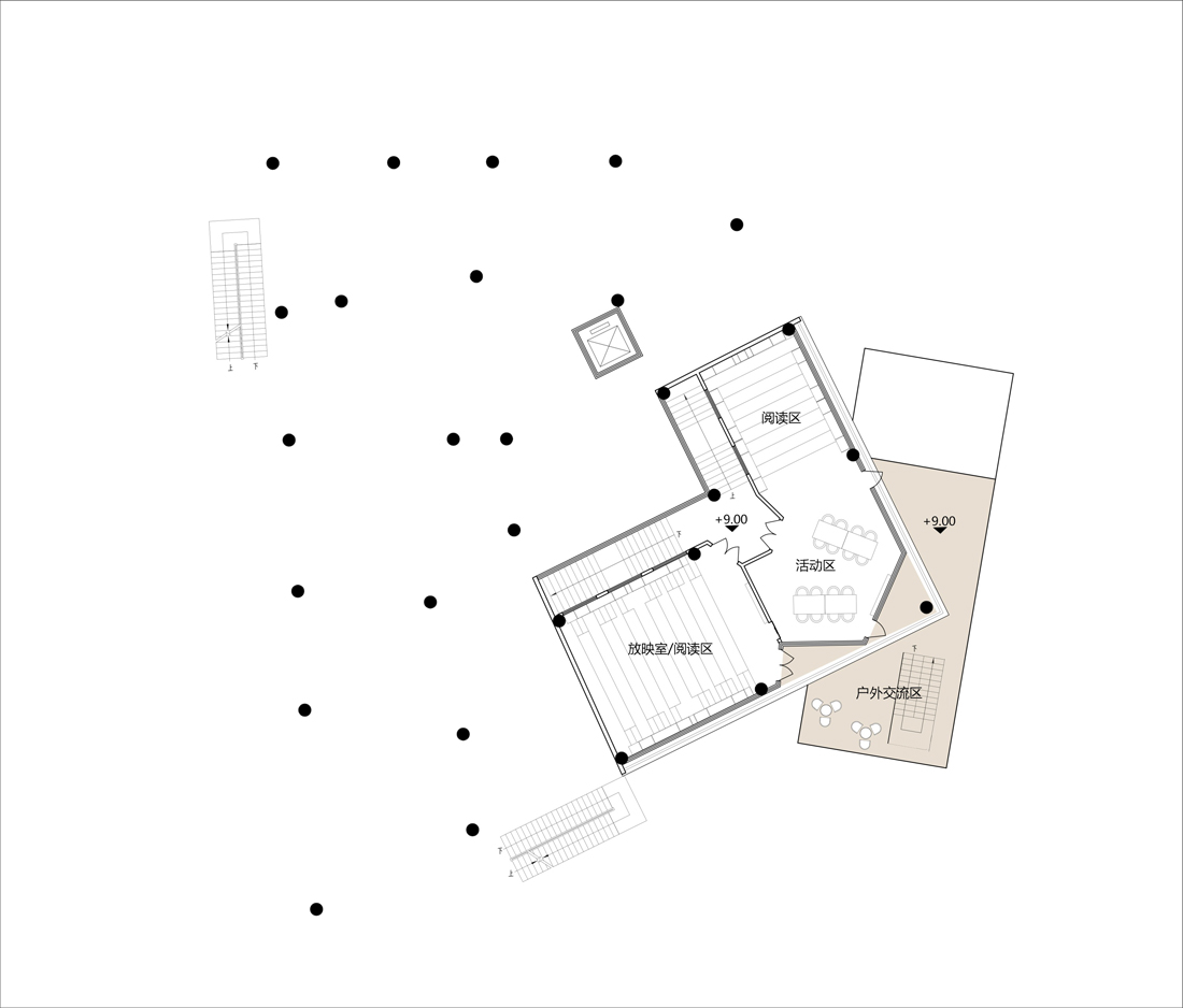 3/2夹层则为多功能室,包含了放映室、阅读室、户外交流区等等;