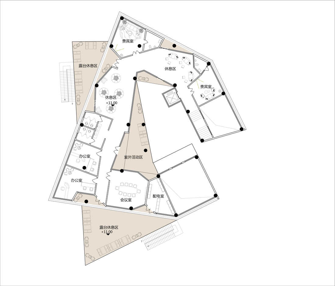 二层是贵宾招待区,包括了贵宾室、休息区、办公室、会议室等;