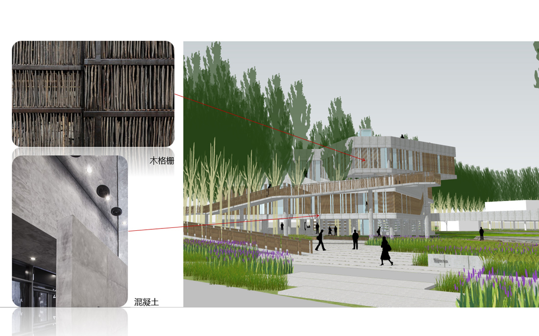 建筑的材料主要选择为混凝土和木质材料。材料选择上更贴近自然,环保,也与当地的建筑风格一致。