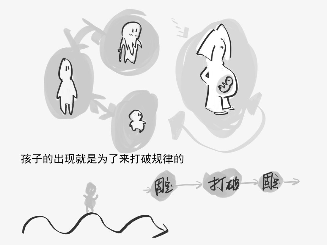 这样看来的话,孩子的出现,打破了这种恐怖的固有规律,形成了如今丰富多彩的世界,让这个世界变得有趣起来。世间万物都在开始与消亡两种状态中相互转换,没有一个事物是永恒不变的。