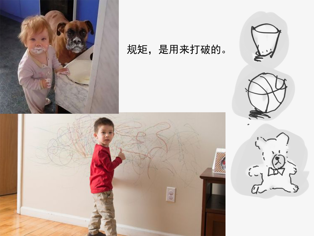 孩子永远都是无止境的去探索,去挑战固有的规则边界,他不是用我们成人的固有思维去看待这个世界的。探索,是孩子的天性。就像孩子会用锅碗瓢盆当打击乐一样,孩子也会用手边的东西去开始他们的“创造”。