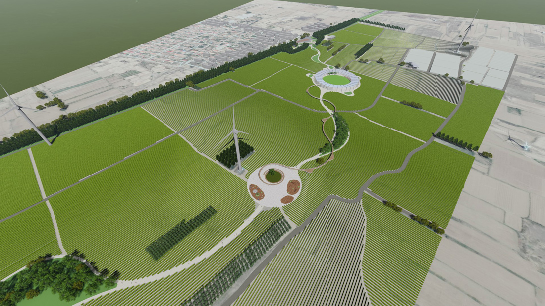 通过对项目场地的勘察分析,WAQI把整个葡萄园产业基地分为六大区域:综合入口区、核心管理区、温室大棚采摘区、休闲区、参观生产区以及葡萄纯生产区。