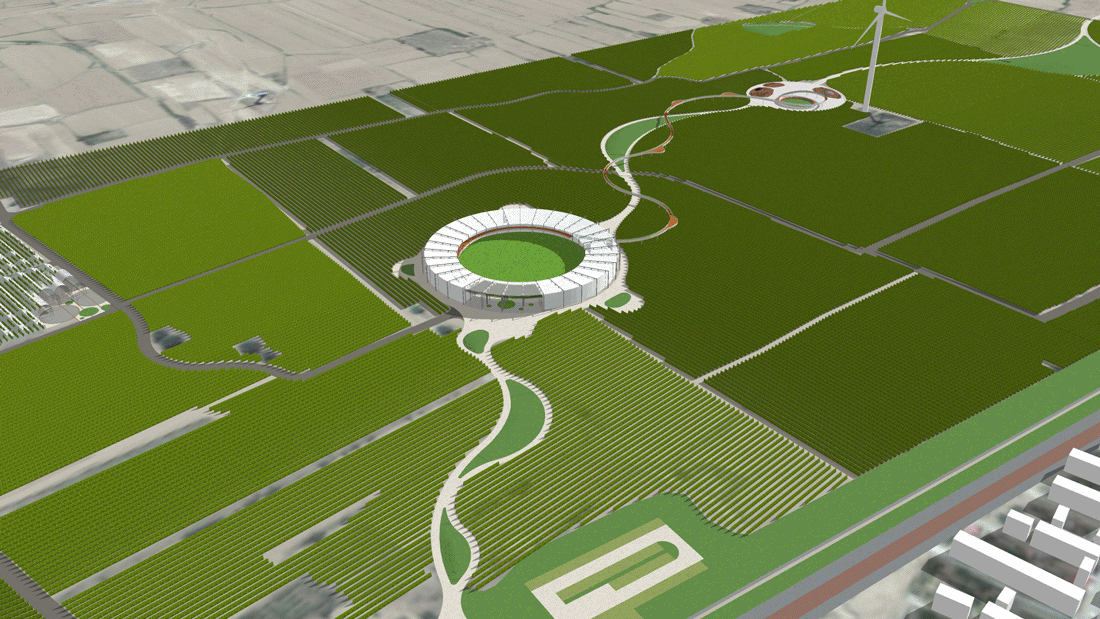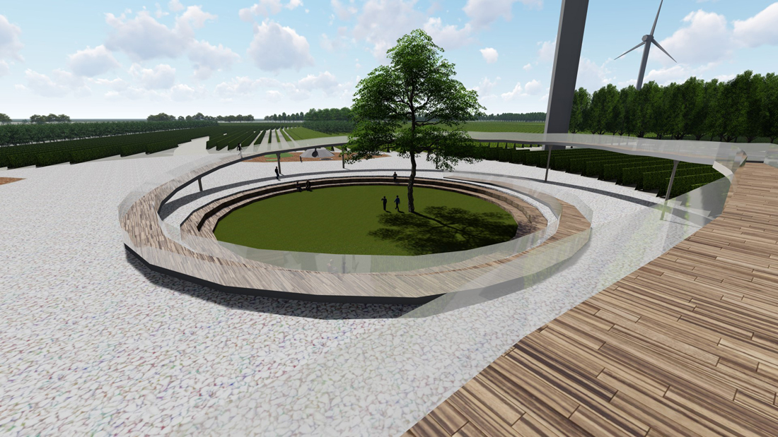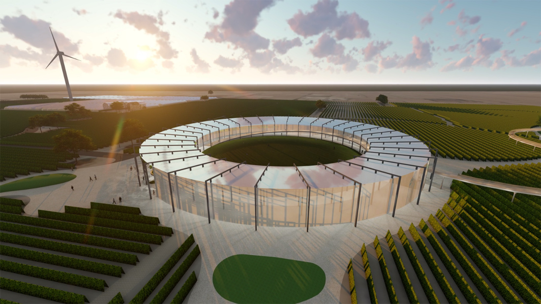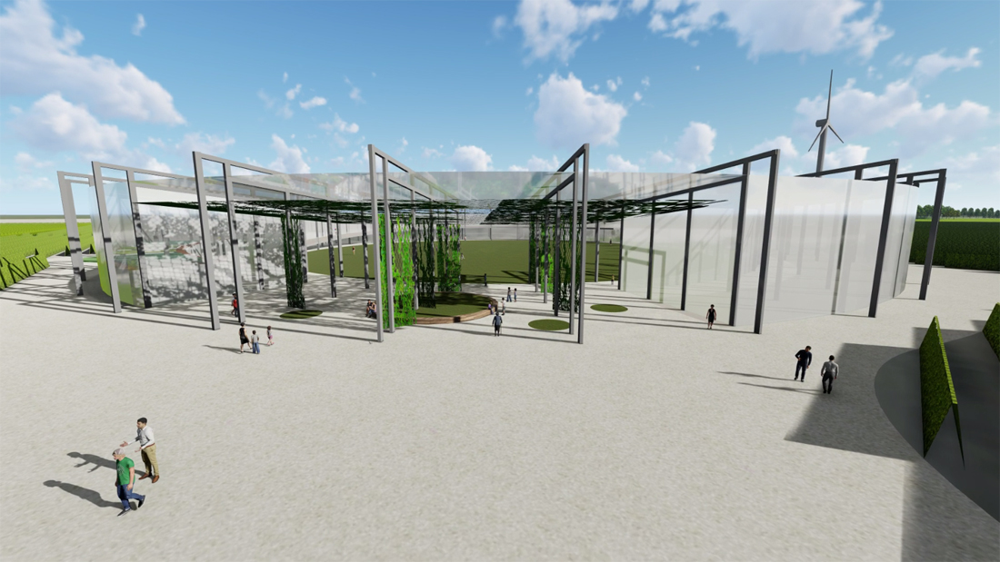 场地的中心位置是一个非常重要的区域,因此WAQI把它设计成为环形的温室大棚。它是园区的综合功能区,这也是整个园区的集散中心。大棚的中心部位是圆形草地,并绕草地设计环形走廊,让大棚内外相通。
