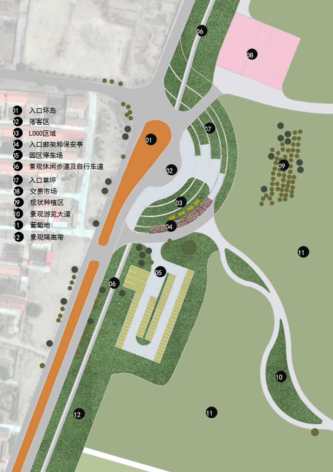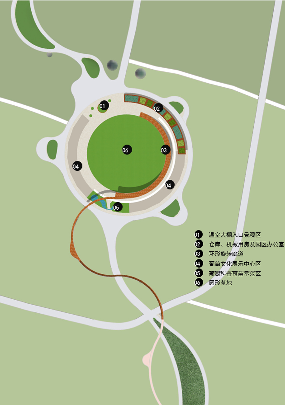 核心管理区:这是园区的核心区域,也是园区的集散中心,包含仓库、园区办公室、葡萄文化展示中心等功能;