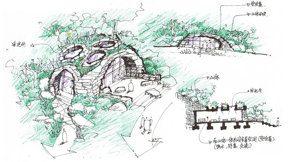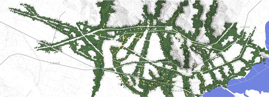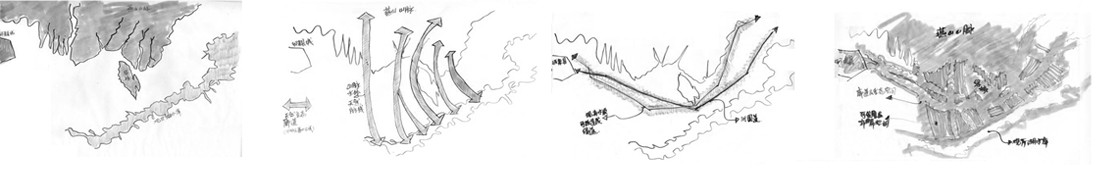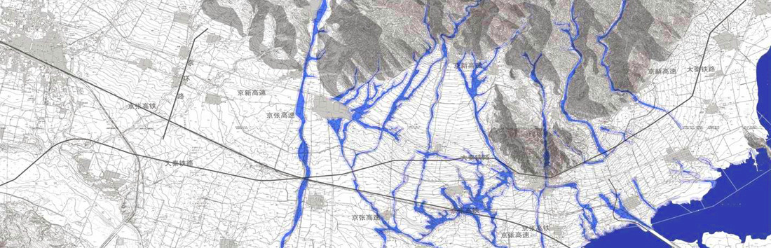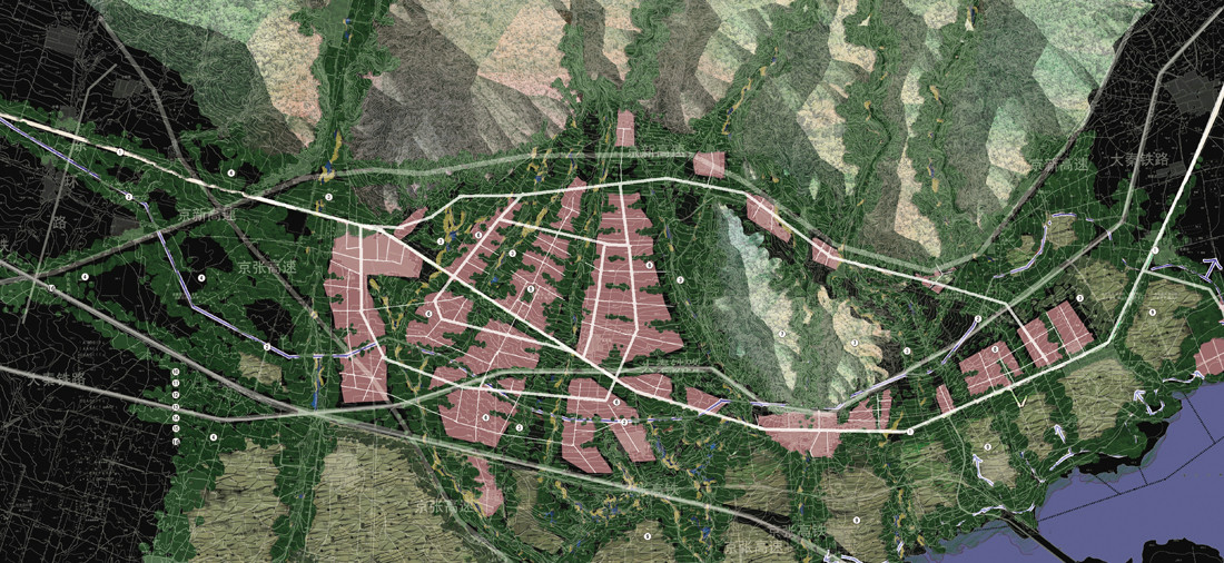 首先确定区域山体和水体位置,寻找天然水流区域及可蓄水空间结构。水脉是自然能量运动极不安全的区域,由此找到安全的人居环境和自然环境区域。