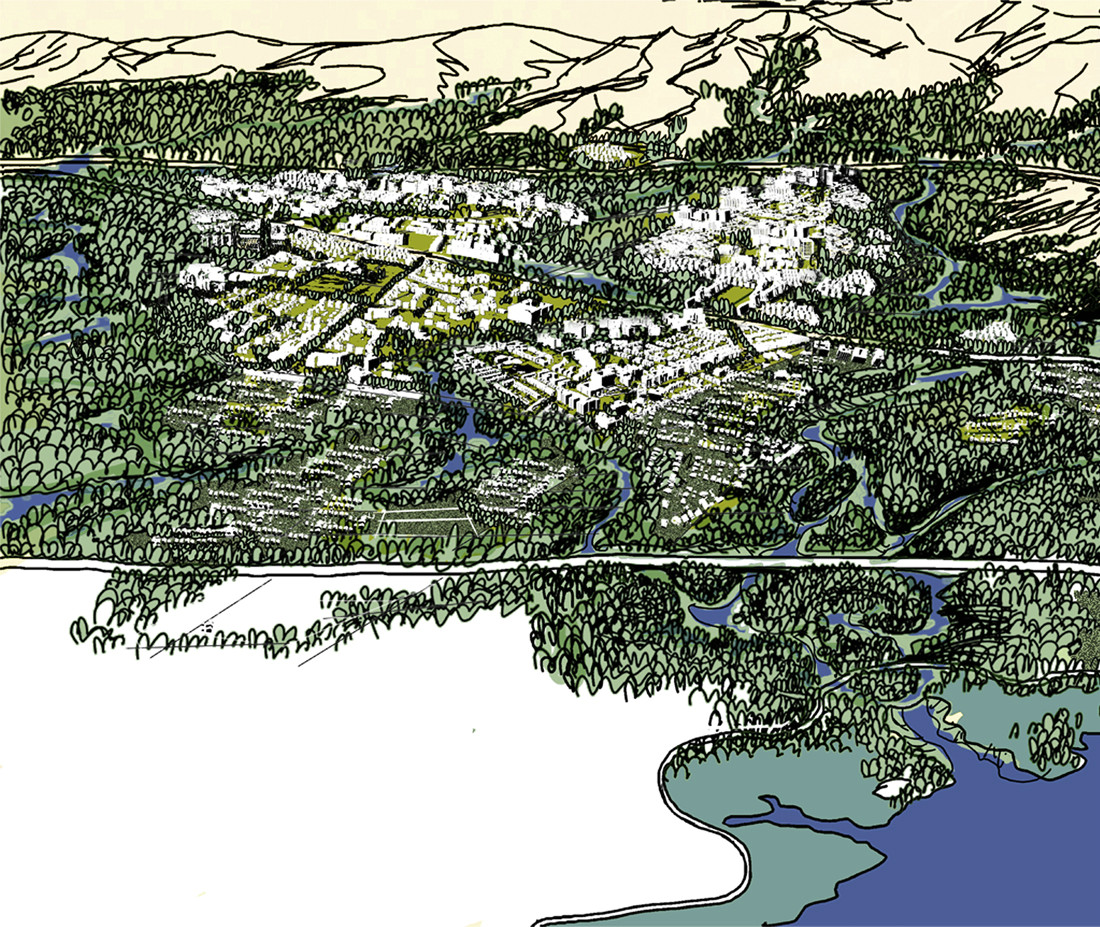工程雨水排放系统的广泛使用,造成了地表水体的消失和地下水位的骤降。当所有这些雨水被排走的时候,城市中的绿色空间就需要更多的灌溉,更加剧了水资源短缺问题。在这种情况下,公园绿地是昂贵的消费者,而非生产者和生态服务的供给者。城市需要一种全新的水文管理策略和空间功能设计来振兴萧条地区,建立新“生态区域”,实现真正的可持续发展。以生态手段规划城市,必须追根溯源,建立在遵循自然规律的基础上,才能使人类成为自然的受益者。
