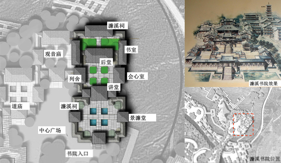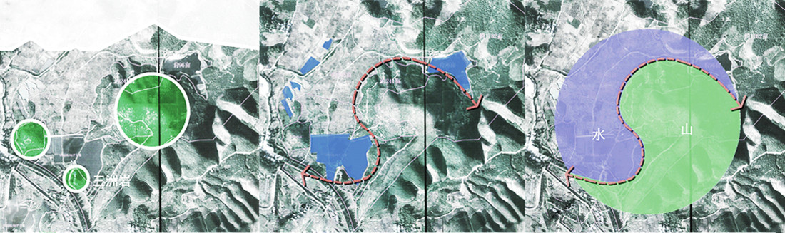 经过分析我们认为场地具备一池三山的特质,可以利用其依山傍水且呈现