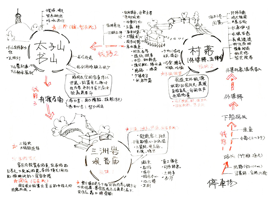 框架关联重要的历史建筑,旅游胜地,视点,地形,地貌等要素。