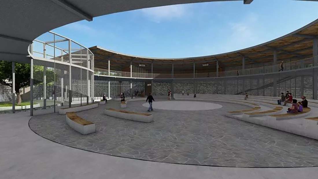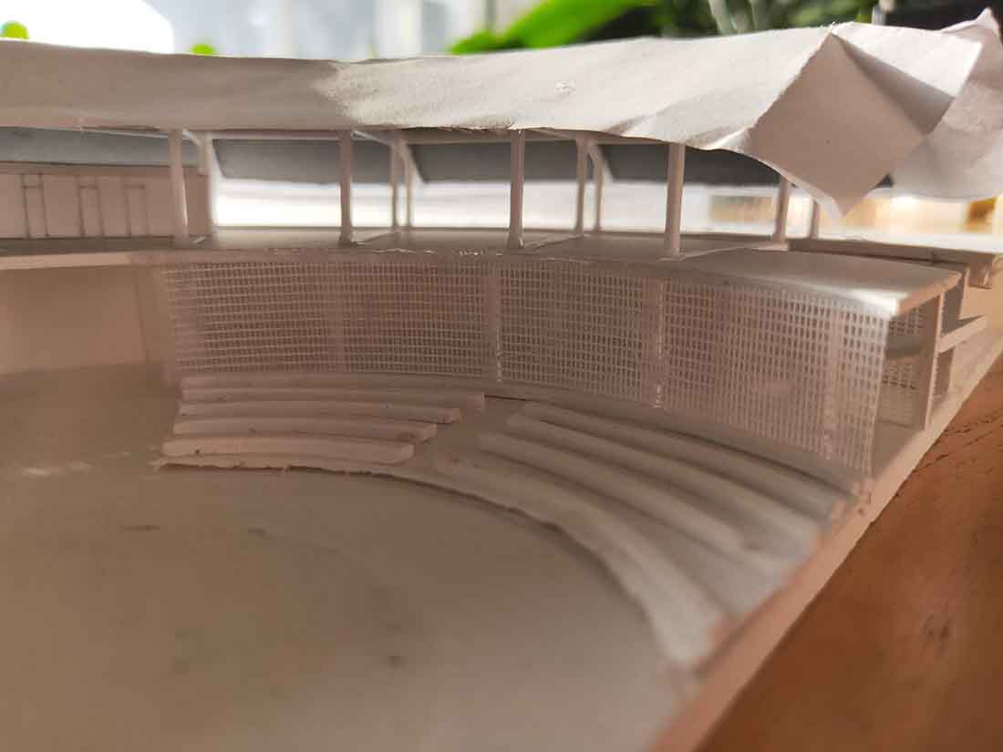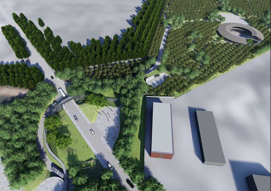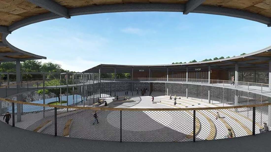 中庭的圆形广场作为整个接待中心设计的核心交流场所,从空间设计上塑造一种强烈的归属感与开阔感。广场面朝小花园广场作为主舞台,视线整体开阔,目之所及的蓝天与森林,让剧场变得清新,具有生命力。