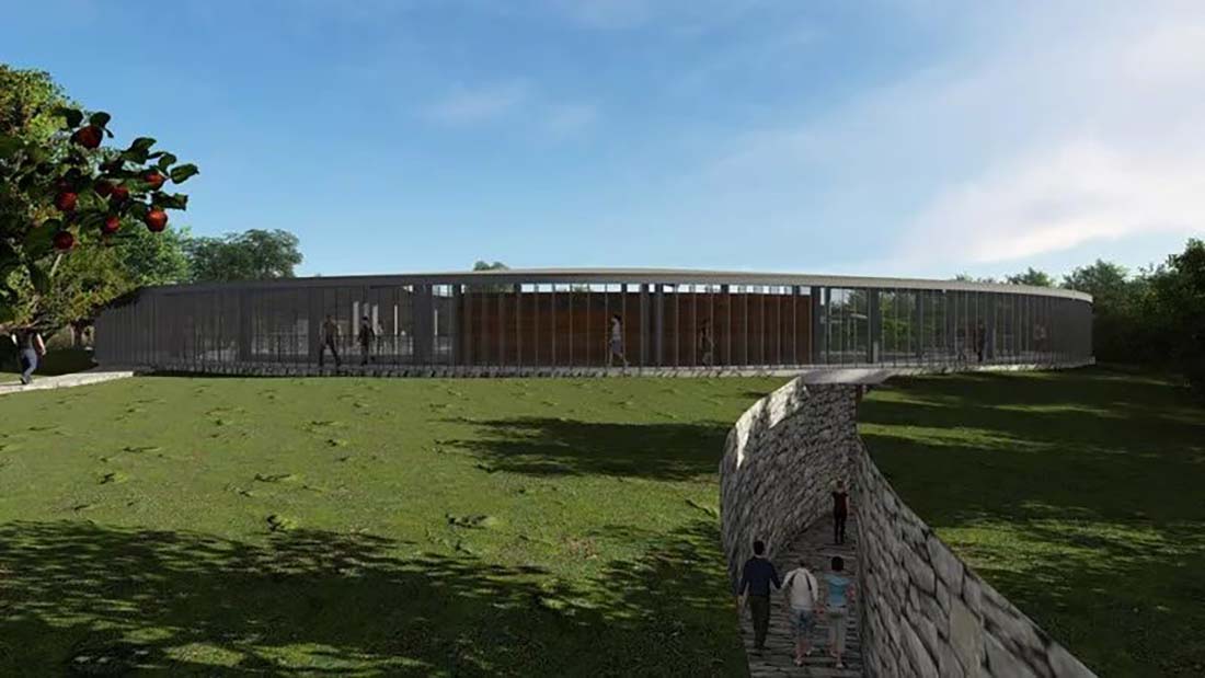 WAQI利用景观亭的手法,设计了一个藏在果林里面的接待中心。竖向机理的格栅顺应树木的方向,使接待中心与环境融合,不同的角度还会有不同的光影变化。除此之外,下沉接待中心的进入方式会有空间感,下沉的走道两侧墙壁也可以作为展示墙。