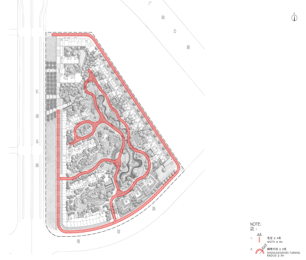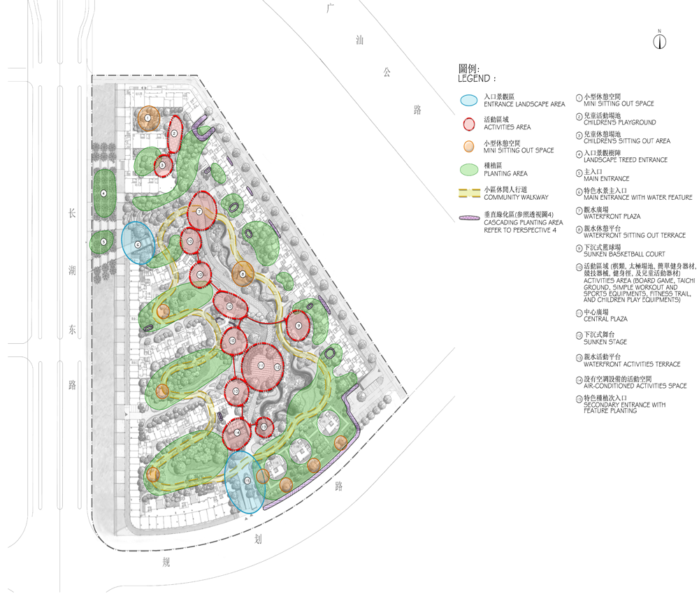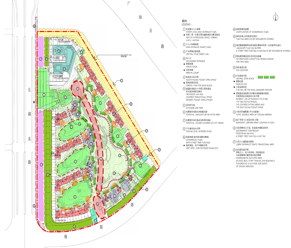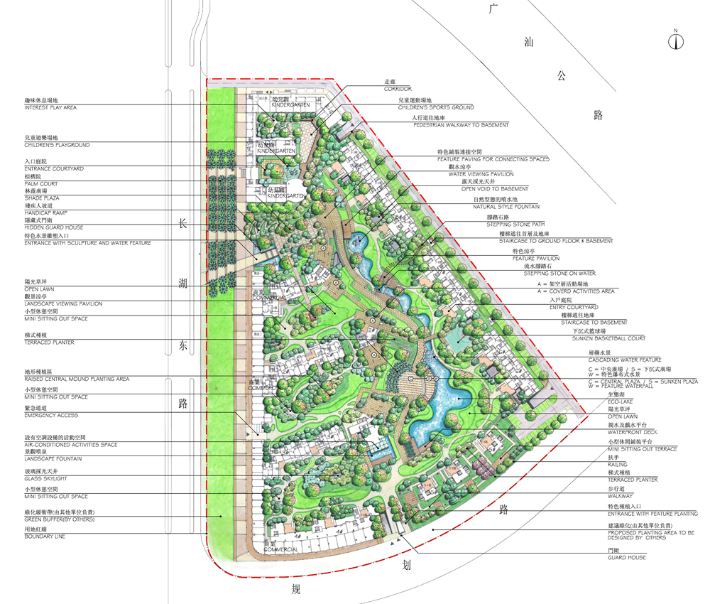 这个占地五万平方米的惠州住宅区内有八栋高层建筑,整个设计中最关键的问题是将可用的空间按照功能清晰地划分。