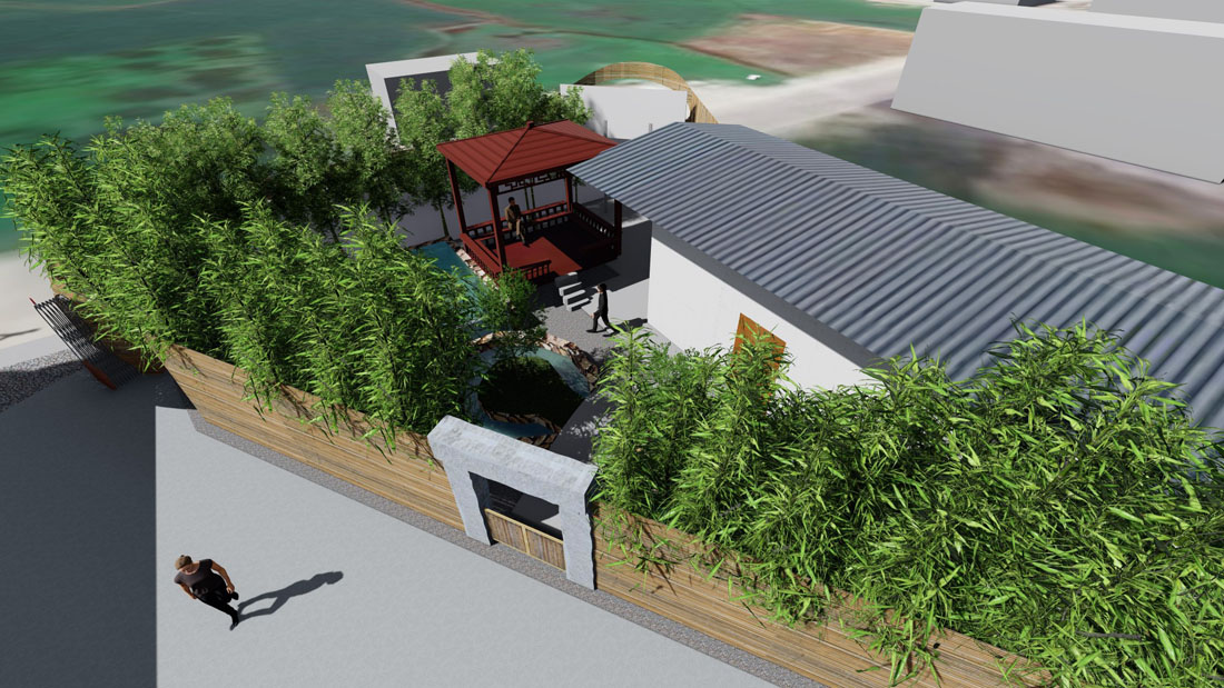 WAQI用竹栏杆以及种植竹子,把该区域与外部分割出两个不同的空间。保证该区域的私密性,打造一个幽禁的私人会客空间。