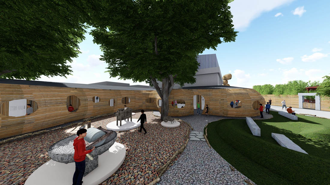 因此WAQI将活动空间与入口建筑相连,打造一个入口的农具展示廊道及其体验区。