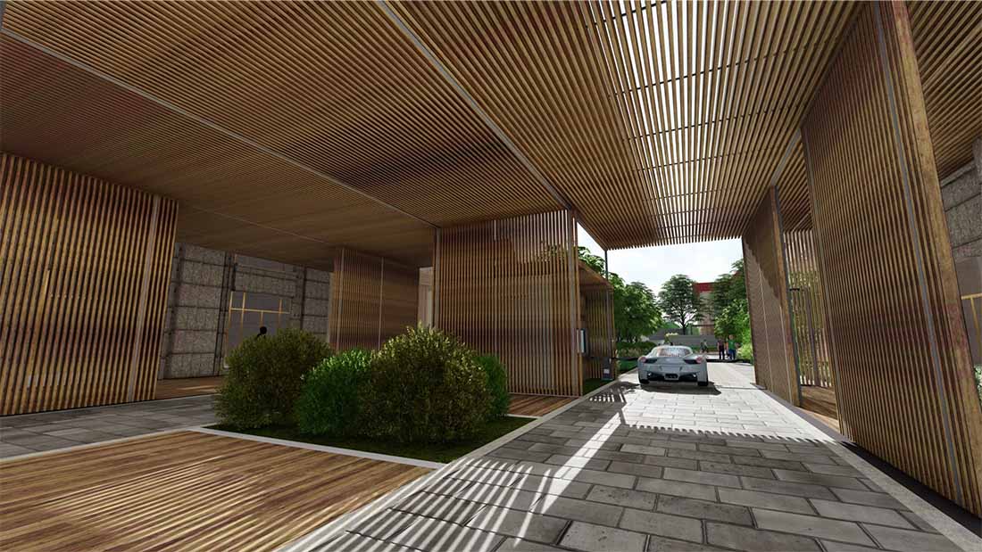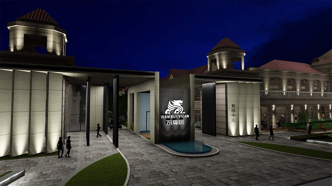 迎宾通道的设计基本保留了现状水池及铺装,WAQI增设迎宾廊架,改造的水景区域,新增的精致的艺术雕塑,营造温馨舒适的氛围,带给客户精致的感受体验。