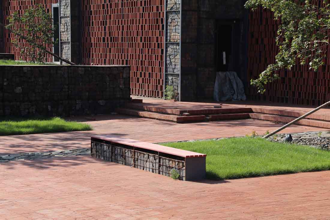 当然,选择了朴素材料的新尝试,也有不好的部分:由于砖的强度各方面问题,其实砖并不是很完整;石笼也略显粗糙。