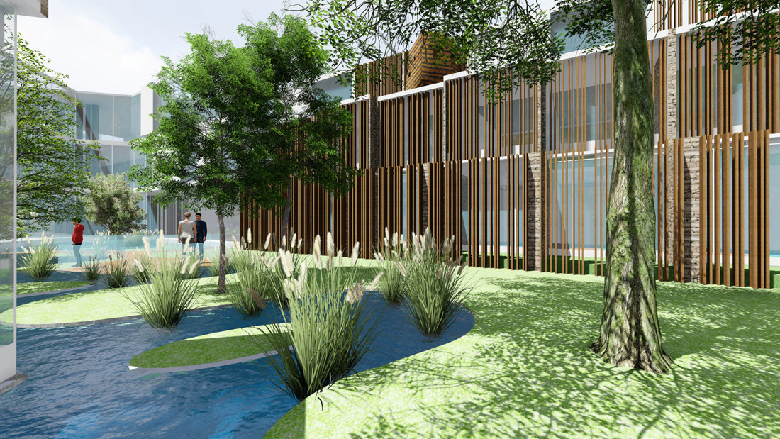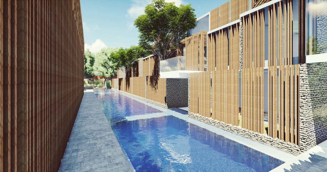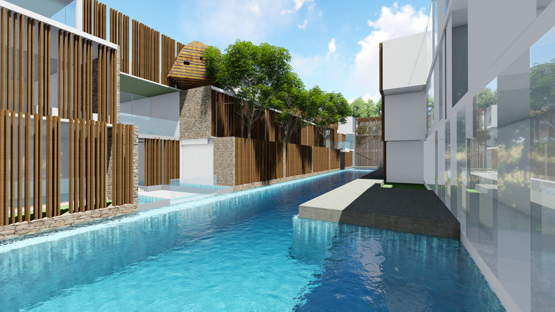 建筑之间的庭院以及室外泳池
