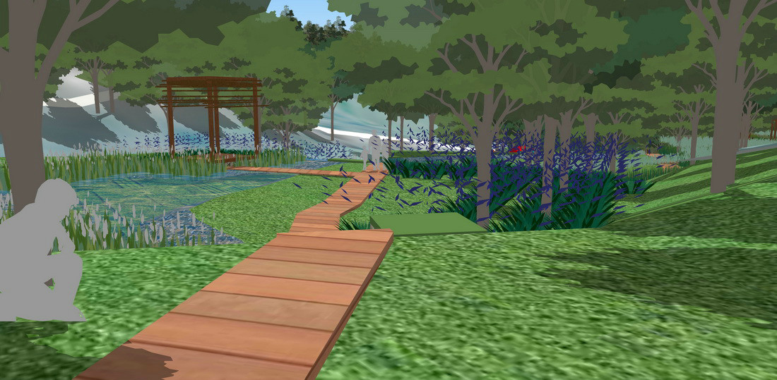 场地两侧高起,呈现自然谷地形态,大好风景尽收眼底